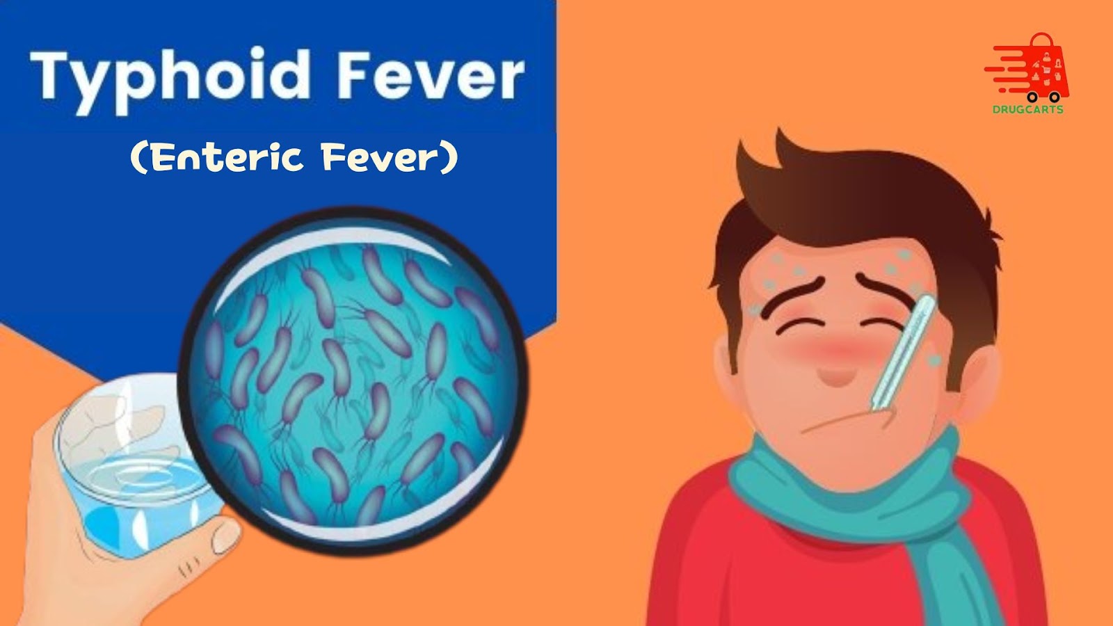 حمى التيفوئيد مرض معدٍ تسببه بكتيريا تعرف باسم Salmonella Typhi وتنتقل إلى الإنسان عن طريق تناول طعام أو شرب ماء ملوث بهذه البكتيريا خاصة في الأماكن التي تفتقر إلى النظافة والصرف الصحي الجيد. ويخطئ البعض في ربطها بالتعرض لأشعة الشمس لكن في الحقيقة لا علاقة لأشعة الشمس بالإصابة بحمى التيفوئيد إذ إن سببها الوحيد هو العدوى البكتيرية.