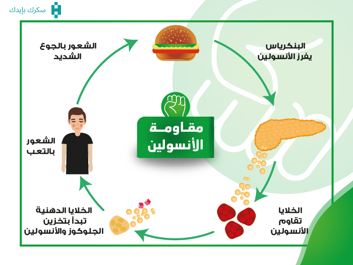 مقاومة الإنسولين هي حالة مرضية تقل فيها استجابة خلايا الجسم لهرمون الإنسولين مما يؤدي إلى ضعف دخول الجلوكوز إلى الخلايا وارتفاع مستواه في الدم ويرتبط ذلك باضطرابات أيضية متعددة مثل السكري والسمنة. تحدث مقاومة الإنسولين نتيجة تداخل مسارات الإشارات الخلوية بسبب عوامل مثل زيادة الأحماض الدهنية الحرة، الالتهاب المزمن، والإجهاد التأكسدي، مما يعيق وظيفة مستقبلات الإنسولين ويقلل من فعالية الهرمون في تنظيم مستوى السكر والطاقة.