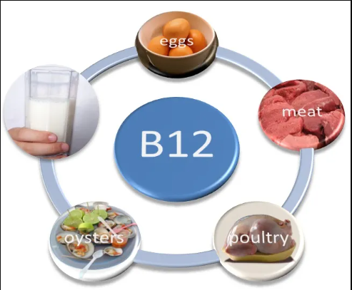 فيتامين B12 (كوبالامين) هو فيتامين ضروري لتكوين خلايا الدم الحمراء ودعم صحة الجهاز العصبي ويشارك في تصنيع الحمض النووي وإنتاج الطاقة من الغذاء. يتواجد بشكل رئيسي في اللحوم الحمراء، الكبد، الأسماك، البيض، ومنتجات الألبان. نقصه يسبب فقر دم ضخم الأرومات مع تعب شديد وتنميل في اليدين والقدمين وصعوبات في التوازن وقد يؤدي إلى اضطرابات نفسية مثل الاكتئاب وضعف الذاكرة. يتم تشخيص النقص بفحص مستوى الفيتامين في الدم ويُعالج بمكملات عن طريق الحقن أو الفم.