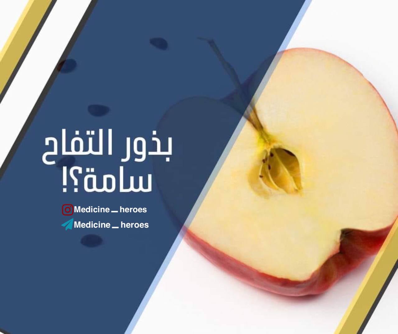 تحتوي بذور التفاح على كمية صغيرة من السيانيد cyanide تُعتبر هذه المادّة سمّاً قاتلًا إلّا أننا محميين من هذا السم بواسطة الطبقة الصلبة المحيطة بالبذور تمرّ بذور التفّاح عبر الجهاز الهضمي الخاص بك دون أن تترك أيّ أثر يُذكر يتعرّض الإنسان للمواد الكيميائية الموجودة داخل البذور فقط إذا قام بمضغها. إنّ جرعة السموم الموجودة في التفاح قليلة مما يجعل أجسادنا تتخلّص منها بسهولة .