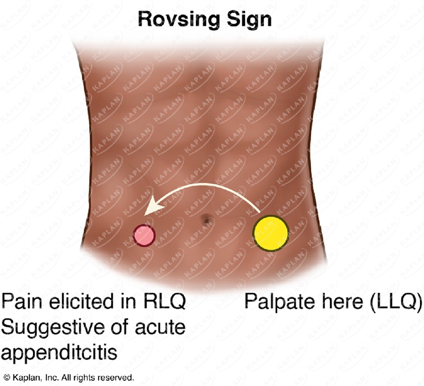 نرى هذه العلامة عند مرضى التهاب الزائدة الدودية ( appendicitis ) ، حيث عند الضغط على اسفل يسار بطن المريض يشعر المريض بالألم في الجهة المقابلة ( اسفل يمين البطن ) .