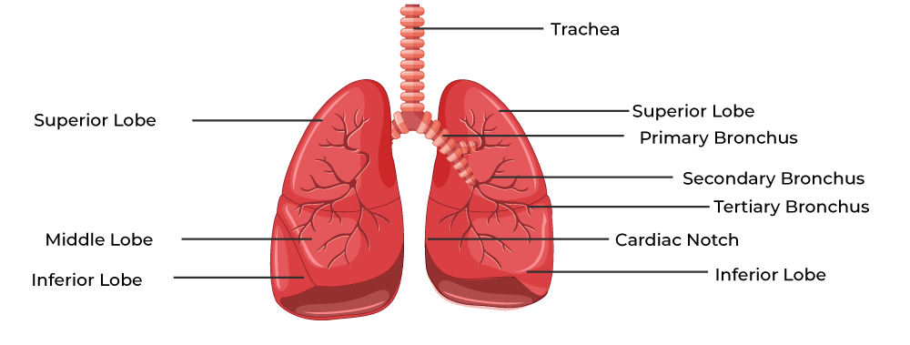 الرئة اليمنى أكبر، لأن القلب يشغل مساحة كبيرة على الجانب الأيسر. كلاهما مقسم إلى فصوص، تحتوي الرئة اليمنى على 3 فصوص، بينما تحتوي اليسرى على فصين. تزن الرئتان معًا أقل من 1.3 كيلو غرام.