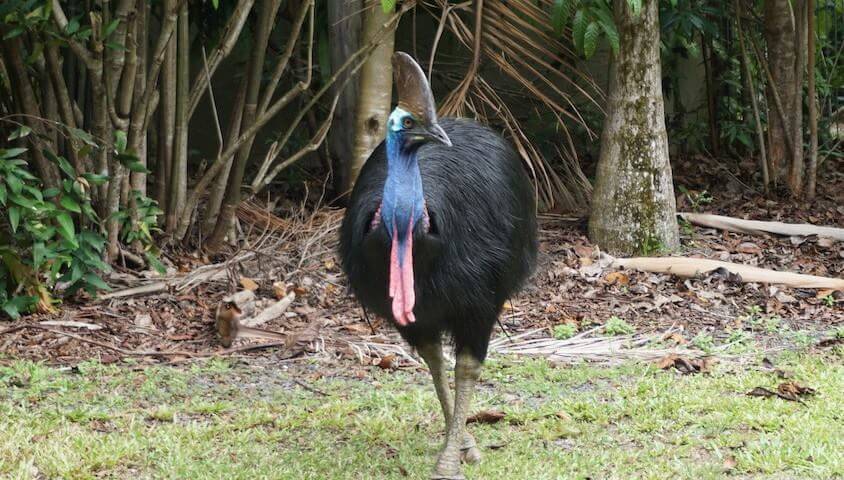 هو ثاني أثقل طائر في العالم بعد النعامة . ضخم ولا يطير . على الرغم من أنه يأكل الفاكهة بشكل أساسي إلا انه شرس جدا.