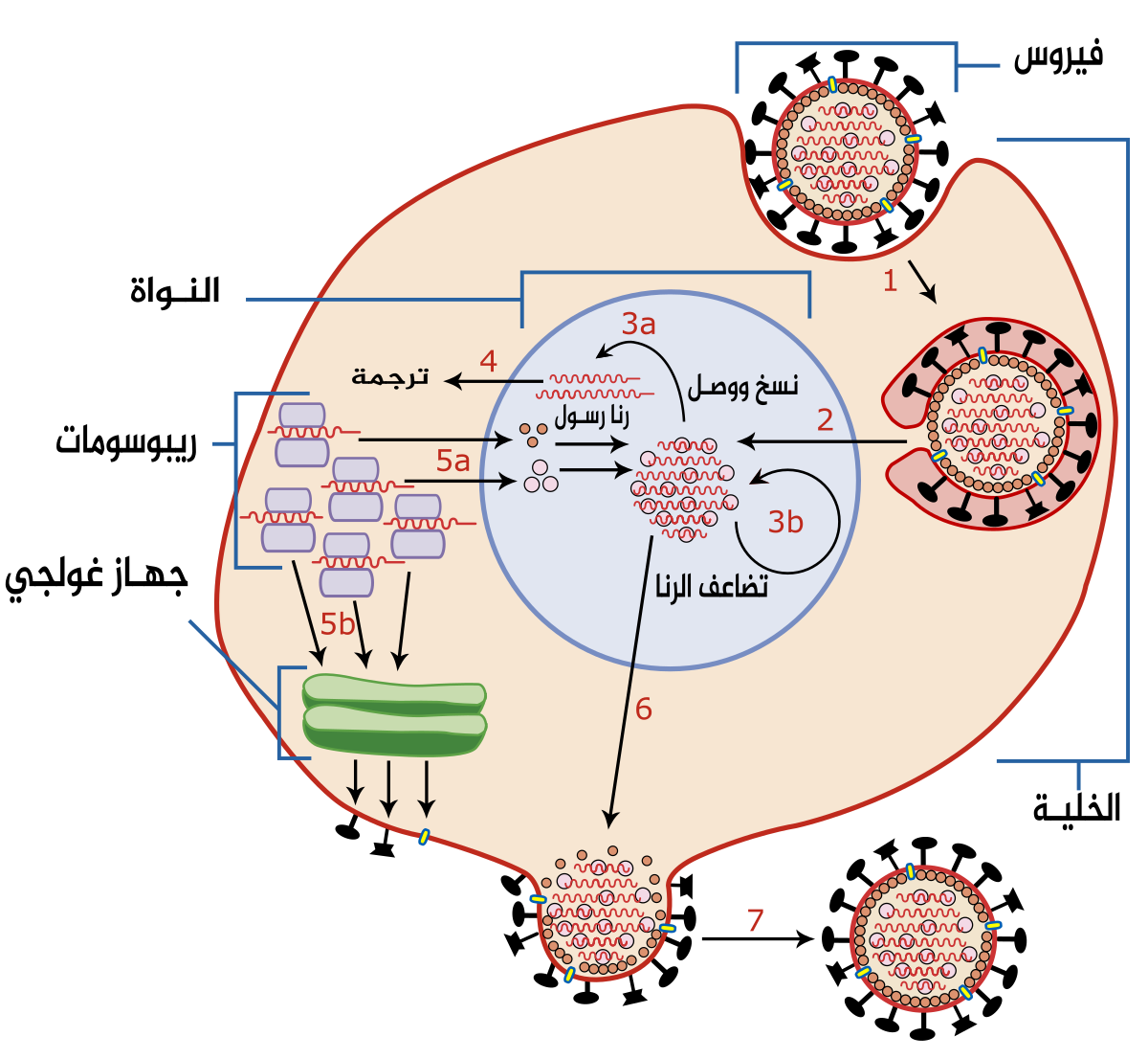 الفيروسات تتضاعف داخل الخلايا الحية، لذلك فأن الطاقة التي تحتاجها والمواد الاولية تكون مجهزة من قبل الخلايا المضيفة، اضافة الى استغلال الفيروس للمكائن الخلوية لتخليق فيروسات جديدة. والجينوم الفيروسي يحوي على المعلومات اللازمة لبناء فيروسات جديدة مرتبة بشكل دقيق.