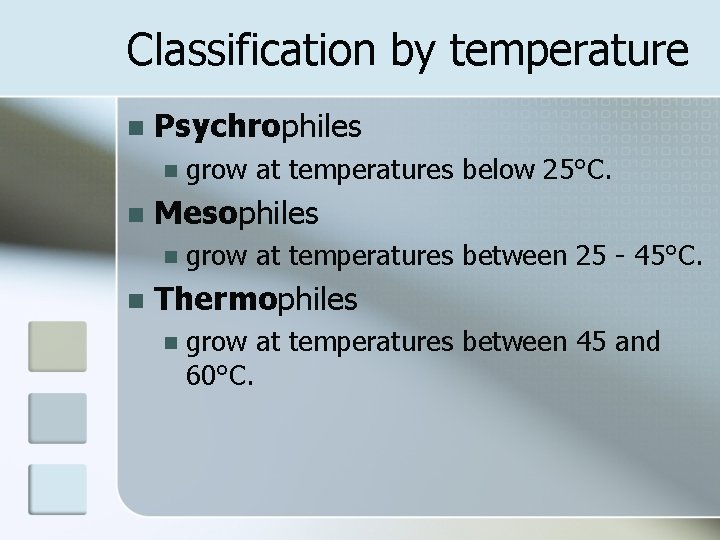 بكتيريا محبة للحرارة المتوسطة mesophiles وتقع درجة حرارتها المثالية النمو بين 35- 45 م.
