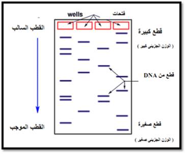 قطع DNA على لوح من الجل بالترحيل الكهربائي Gel Electrophoresis: