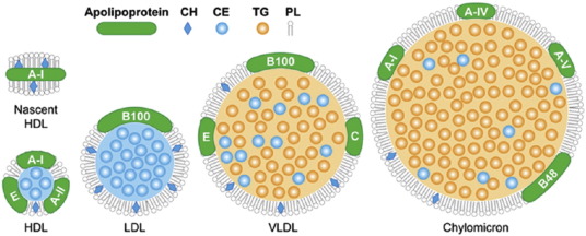 توجد أربعة أنواع رئيسية من البروتينات الدهنية في البلازما تحتوي على نسب مختلفة من الجليسريدات الثلاثية وبروتنيات الكوليسترول والدهون الفوسفاتية ، وكل نوع من هذه البروتينات له وظيفة مختلفة عن الاخر غير انها تتشابه كلها بدرجة كبيرة في التركيب .