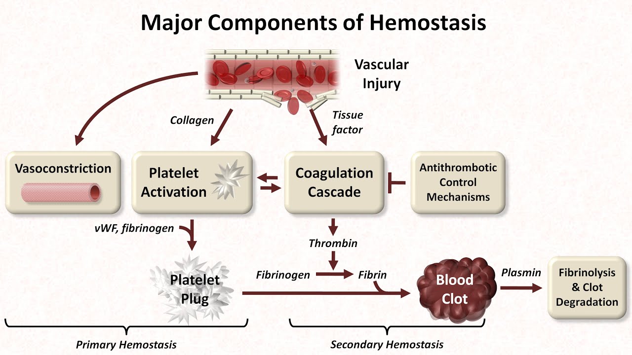 تعتبر عملية الجلطة الدموية من أعقد العمليات الكيميائية التي تحدث داخل الجسم فهي تخضع إلى أكثر من 30 تفاعلات انزيميا وكيميائيا، يمكن تحديدها من خلال مسارين خارجي وداخلي .