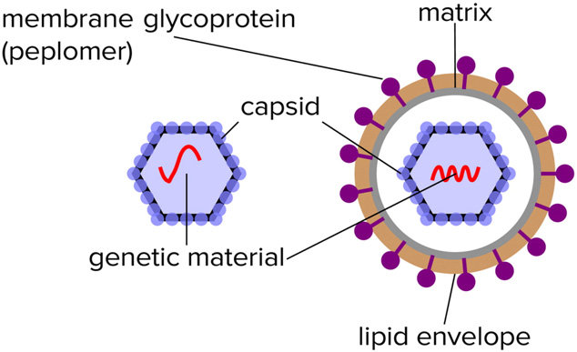 سُمي فيروس كورونا (وتعني الهالة أو الإكليل) بذلك بسبب شكله تحت المجهر، عندما يُفحص الفيروس المستدير فحصًا دقيقًا، يكون له تاج من البروتينات تُسمى قُسَيمات فولفية peplomers تخرج من مركز الفيروس في كل اتجاه. تساعد هذه البروتينات الفيروس على تحديد كونه يستطيع أن يصيب مضيفه.