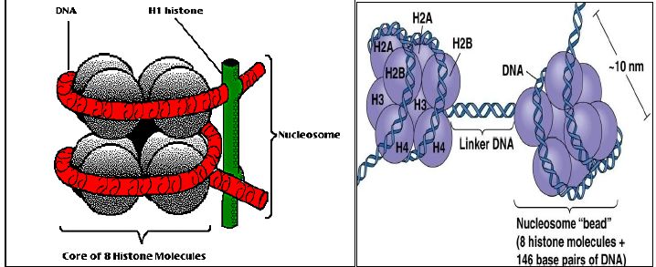 الوحدة التركيبة للكروماتين ، تكون ثابتة تحت ظروف فسلجية مختلفة ، ويعد الوحدة الاساسية لتعبئة DNA في الخلايا حقيقية النواة التي تحوي على DNA والهستونات