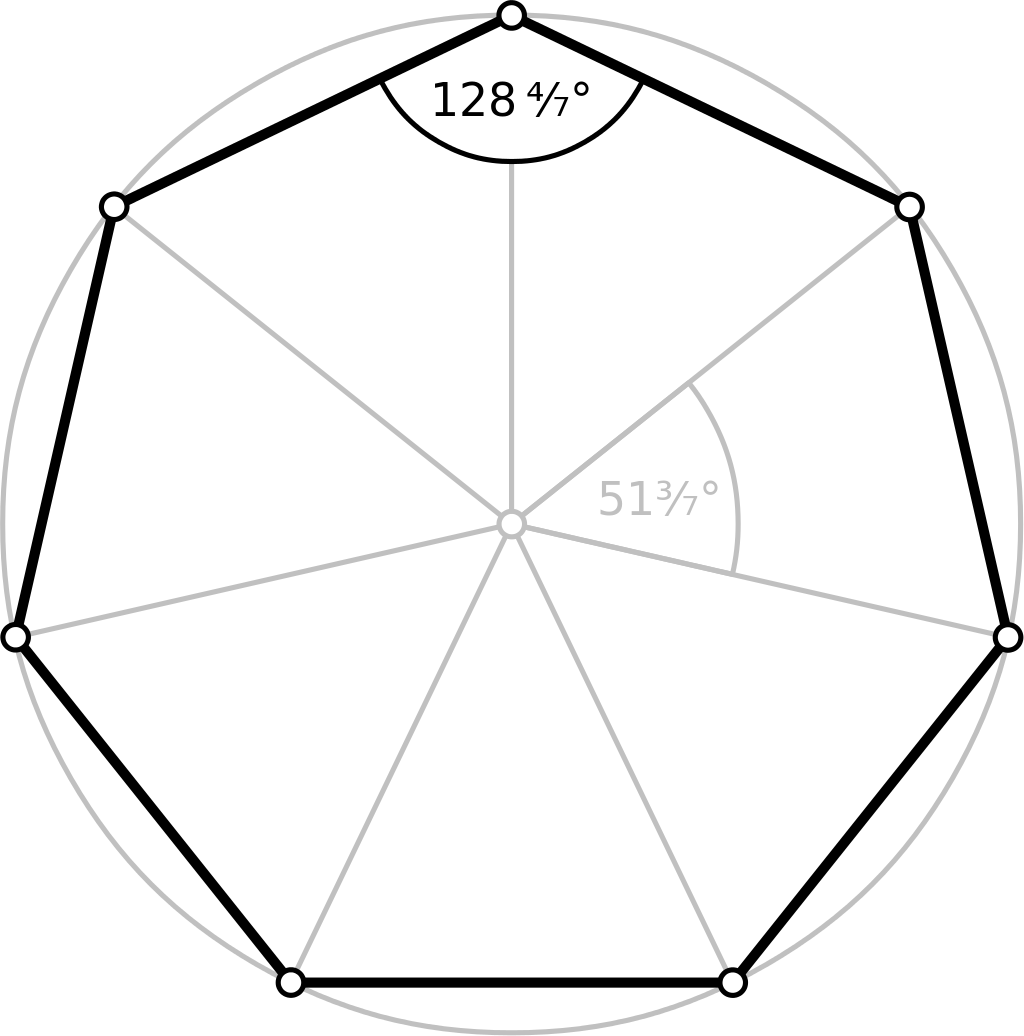 لايمكن إنشاء رسم السباعي المنتظم فقط بإستخدام المسطرة والفرجار. يمكن إثبات ذلك بإستخدام حقل الأعداد القابلة للإنشاء