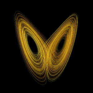 صورة تمثل المخطط الإسقاطي لجملة لورينتز الموافقة للقيم التالية: r=28, σ = 10, b = 8/3
