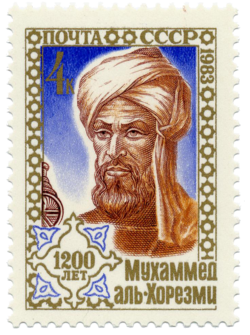 طابع تذكاري سوڤييتي يحمل صُورة العالم المُسلم مُحمَّد بن مُوسى الخوارزمي مُبتكر علم الجبر. صدر صدر يوم 6 أيلول (سپتمبر) 1983م بِمُناسبة مُرور 1200 سنة على ولادة الخوارزمي.