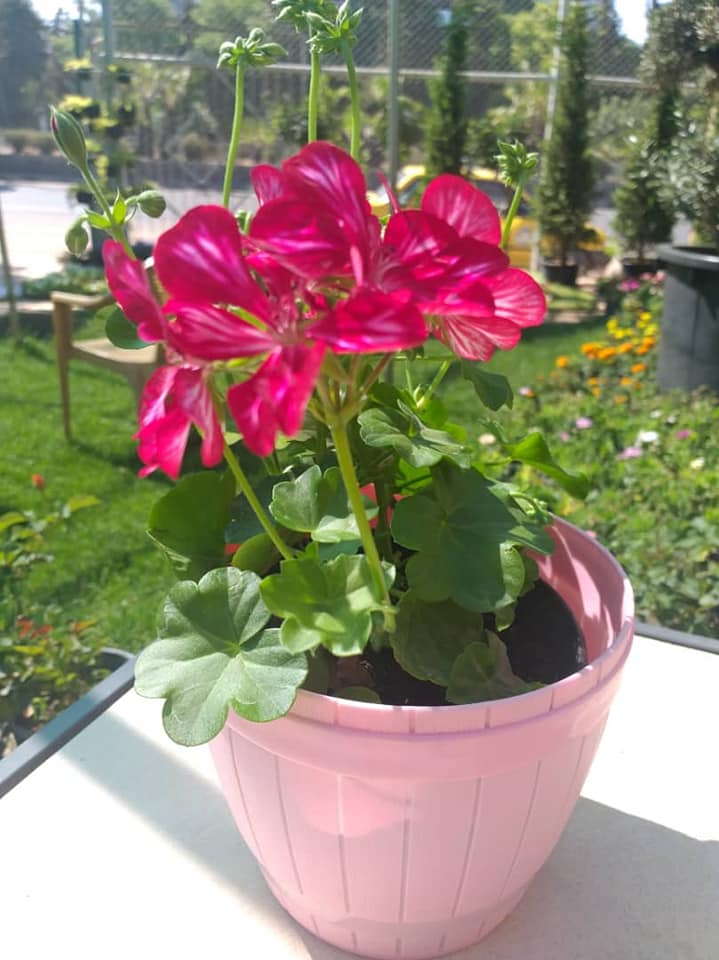 المسكة (الاسم العلمي Pelargonium peltatum) الأسماء الشائعة: لقلقي ترسي، جيرانيوم متعرش، الموطن الأصلي: جنوب أفريقيا، نوع مميز من أنواع Pelargonium المعمرة ،يختلف عن باقي الأنواع بكونه متسلق ، أوراقه تشبه أوراق اللبلاب ، ينمو لارتفاع يصل الى 2 م بشكل شجيرة ، يمتلك طيف واسع من الألوان وخاصة الاصناف الهجينة، الأزهار متجمعة على حامل طويل كباقي أنواع الجيرانيوم ، تمتد فترة الإزهار من الربيع و حتى أوائل الصيف.