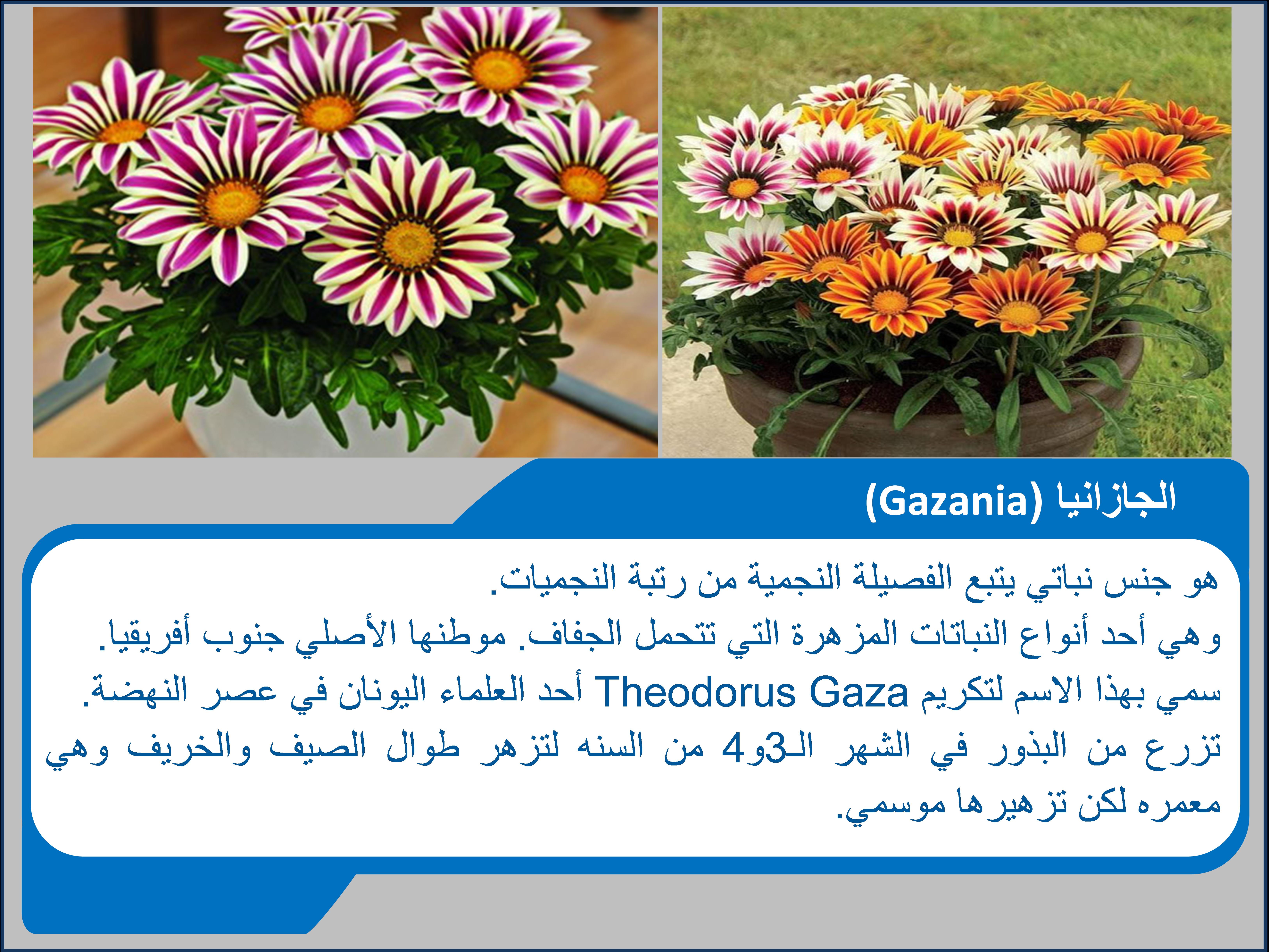 نبات عشبي معمر صيفي شبه شجيري، الساق رفيعة خضراء زغبيه يصل ارتفاع النبات متوسط ١.٢٥متر، الاوراق بسيطة بيضية إلى رمحيه متقابلة كاملة الحافة خضراء داكنة يصل طولها ٩سم زغبيه واضحة التعري والعرق بارزة على السطح السفلى للورقة، الأزهار تخرج في نورات طرفية والازهار صغيرة الحجم نجمية متعددة الالوان تظهر معظم اوقات السنة، التكاثر بالبذور والعقلة في الربيع والخريف.