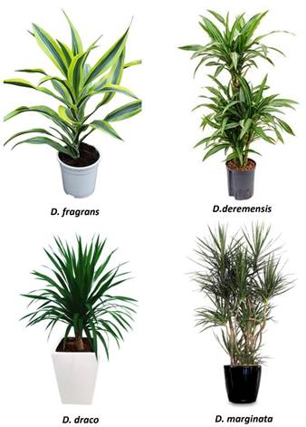 النبات ذو نمو شجيري قائم، يعطي اوراقاً شريطية مختلفة الاشكال والالوان، وفي حالة تلون الاوراق تكون مخططة باللون الابيض او الاصفر مع الاخضر الداكن.