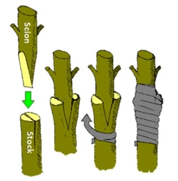 التطعيم Grafting عملية نقل جزء من نبات إلى نبات آخر فينمو الأول على الثاني ويسمى الأول الطعم، والثاني الأصل. نلجأ للتطعيم لإكثار أنواع وأصناف ذات مواصفات جيدة وعالية الإنتاجية وخالية من الأمراض والتي لا يمكن إكثارها بالعُقل أو الترقيد أو غيرهما من طرق الإكثار الخضري، وأنواع التطعيم هي التطعيم بالعين والتطعيم بالقلم.