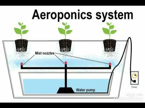 تزرع النباتات معلقة في الهواء، ويتم رش جذورها بمحاليل مغذية.