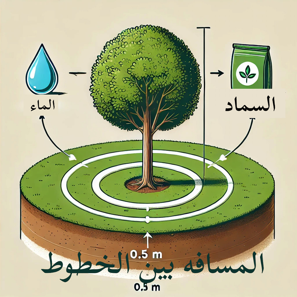 للحفاظ على صحة الأشجار وضمان وصول العناصر الغذائية والماء للجذور بطريقة مثالية، يُفضل استخدام نظام توزيع يعتمد على وضع الأسمدة والماء بعيدًا عن الساق بمسافة كافية. هذا الإجراء يحمي الجذور من التعفن أو التضرر بسبب تراكم الماء أو التركيز العالي للأسمدة.