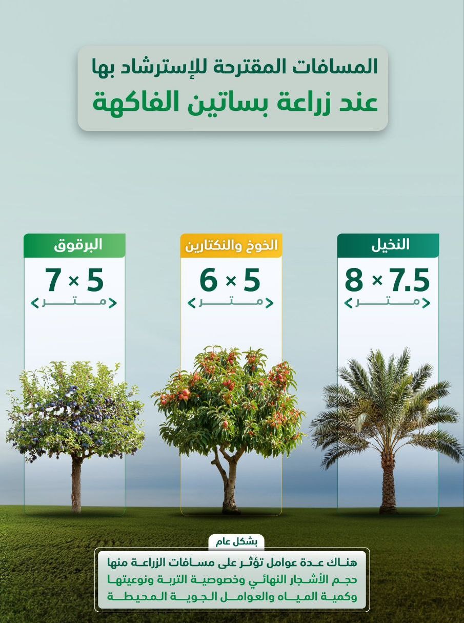 المسافة المناسبة بين اشجار الفاكهة (النخيل، الخوخ، البرقوق) عند زراعة بساتين الفاكهة