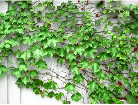 نبات دائم الخضرة، ليس له ازهار ويصل ارتفاعه الى 8م تقريبا وبنسبة افتراش تقريبا 1م، أوراقه خضراء بيضية صغيرة، وينمو في الضوء الساطع تحت اشعة الشمس المباشرة ويفضل ابعاده عنها في أشهر الصيف الحارة (حزيران - تموز - آب) منعاً من احتمالية احتراق أوراقه.