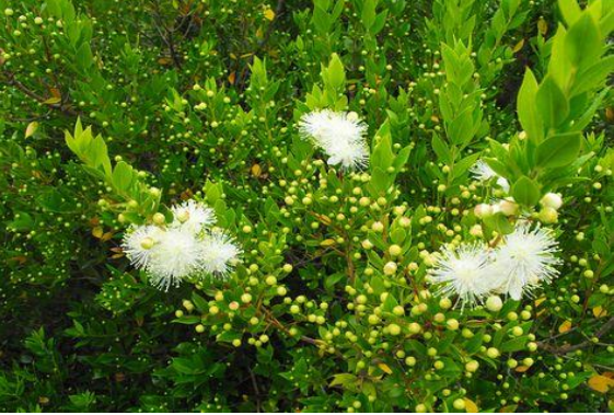 ويسمى محليا الآس، وهو شجيرة دائمة الخضرة عطرية الرائحة ارتفاعها يتراوح بين 1 - 2 م وقد تصل الى 5 م الاوراق متقابلة بسيطة صغيرة ملساء رمحية، الازهار بيضاء او مشوبة باللون الاحمر قليلا تحمل مفردة، الثمار بيضوية حمراء ارجوانية سوداء اللون البذور كلوية الشكل شاحبة اللون.
