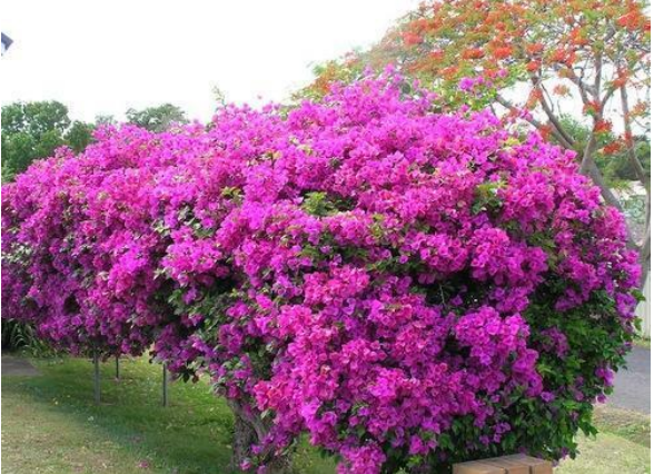 يعد من الأشجار المتسلقة التي تنمو في الشمس ويصل ارتفاعها الى أكثر من 4 م، له أوراق خضراء متبادلة بيضوية الشكل، ازهاره كثيفة ذات ثلاث بتلات ولها ألوان متعددة منها الأحمر وهو الأكثر شيوعا في العراق والاصفر والبرتقالي والأبيض والمرقط ومنه ما يحمل لونين للزهرة الواحدة، تزهر من الربيع وحتى نهاية الصيف، ساقه خشبي يحمل بعض الاشواك، يستعمل النبات في تزيين الحدائق وخاصة الاسيجة ليضفي عليها منظرا خلابا بأزهاره الكثيفة الرائعة..