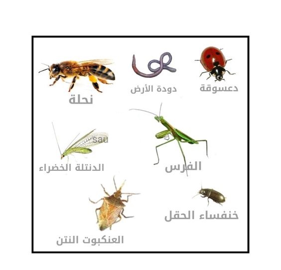 الحشرات التي في الصورة هي حشرات مفيدة والبعض منها غير ضار لذلك لا يجب التخلص منها ان شوهدة في الحديقة.
