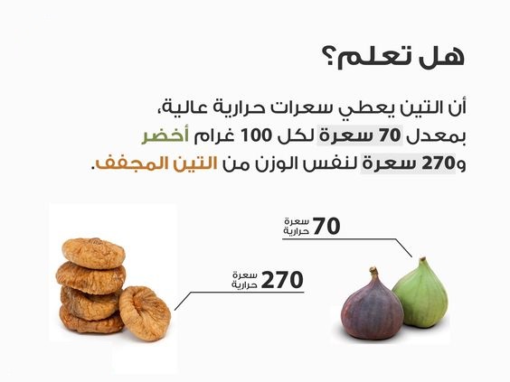 ان التين يعطي سعرات حرارية عالية وتختلف السعرات التي يعطيها بين التين الاخضر والتين المجفف