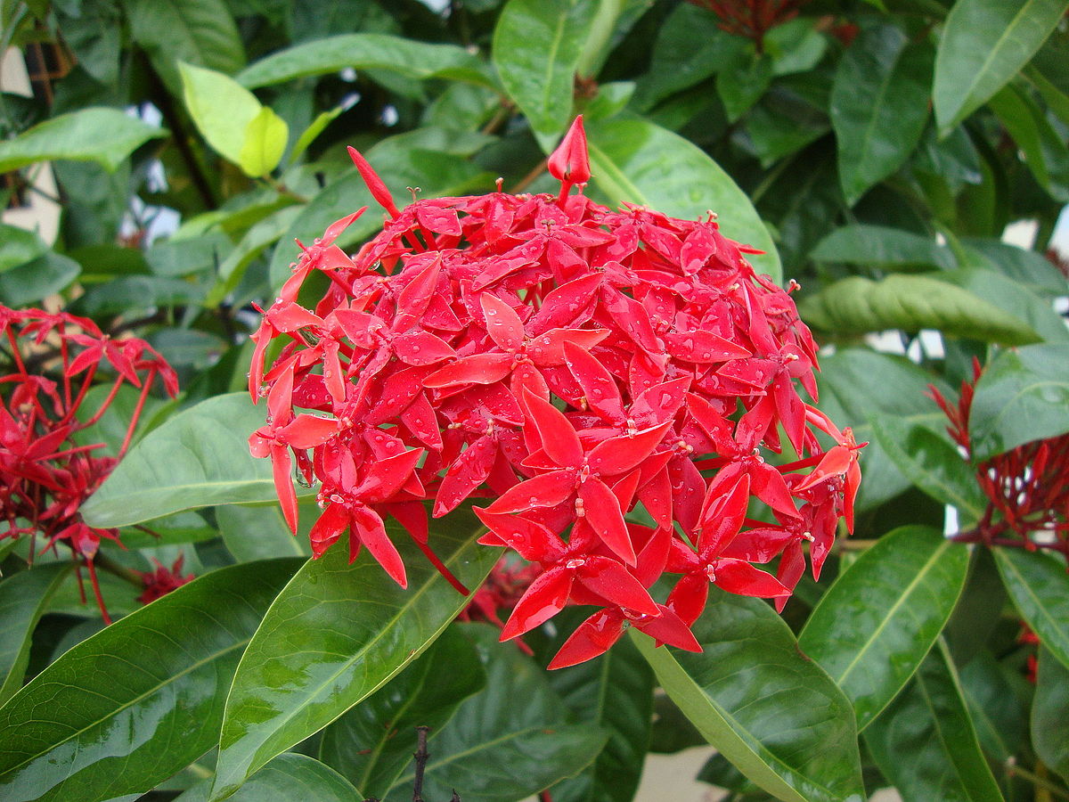 نبات اكسورا أو كما يسميه البعض ياسمين جزر الهند، أو لهب الغابات، أو جيرانيوم أدغال، واسمه العلمي Ixora coccinea ينتمي لفصيلة Rubiaceae وهي فصيلة الكاردينيا نفسها. موطنه ميانمار والهند واستراليا وماليزيا وسيريلانكا وأفرقيا الاستوائية. ويربى داخلياً في المناطق الباردة أما في المناطق الحارة فيربى خارجياً، ويشمل أنواع كثيرة تصل إلى 350 نوع. يزهر في الربيع وتبقى أزهاره لفترة طويلة. متساقط الأوراق في المناطق الباردة، ودائم في المناطق الحارة والمعتدلة. أزهاره جاذبة للنحل والفراشات والطيور.
