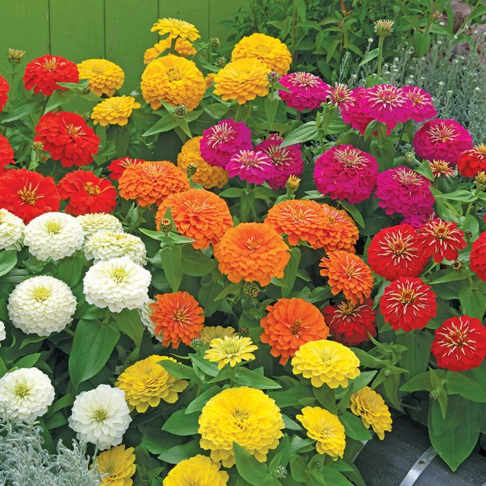 أزهار الزينيا Zinnia elegans زهور صيفية جميلة تتحمل الحرارة إلى حد ما، وتزرع عادةً في الربيع وتنتهي حياتها مع نهاية الصيف يصل طولها من90-100 سم ومنها haageena، يصل ارتفاعها إلى 40 سم تقريباً، يتفرع بغزارة بعرض 70 سم. ألوان الأزهار أبيض أو أحمر أو وردي أو أصفر أو برتقالي ذهبي أو بنفسجي فاتح وغامق. صالحة للقطف، وتزرع متباعدة بقدر 40 سم ولكي تزين بها الأسطح والشرفات والمداخل فيمكن زراعتها في أصص صغيرة