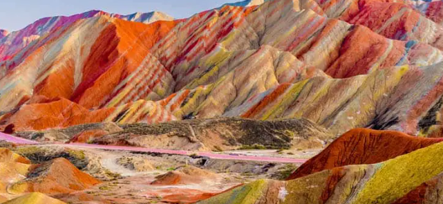 تضاريس دانكسيا في الصين: تشكلت هذه التضاريس من الحجارة الرملية ذات اللون الأحمر والتكتلات من العصر الطباشيري، توجد تضاريس دانكسيا الفريدة جنوب شرق وجنوب غرب وشمال غرب الصين، تتميز هذه التضاريس بشرائح من الصخور الرسوبية الحمراء على المنحدرات الحادة. وقد تبدو تضاريس دانكسيا مشابهة في مظهرها للتضاريس الكارستية الموجودة في مناطق الحجر الجيري، ولكونها تختلف عنها من حيث التكوين فإن تضاريس دانكسيا تعرف باسم التضاريس الكارستية الزائفة.