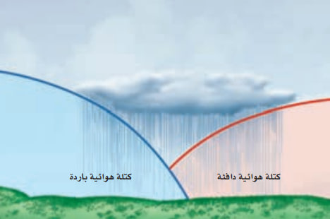 الجبهات الباردة :ـ عندما تتقدم كتلة هوائية باردة وتندفع إلى أسفل كتلة دافئة ترغم الأخيرة على الارتفاع إلى أعلى. ويسمى الحد الفاصل بين الكتلتين جبهة باردة، ومع ارتفاع الهواء الدافئ فإنه يبرد ويتكاثف وتسقط الأمطار .
