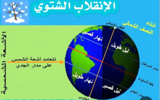 الانقلاب الشتوي : اليوم بداية فصل الشتاء فلكيا حيث يحدث الانقلاب الشتوي في النصف الشمالي من الكرة الأرضية بين يومي 21 و22 من شهر كانون الأول/ديسمبر من كل عام، حيث يميل محور الكرة الأرضية في ذلك اليوم بعيداً عن الشمس، وتكون أشعة الشمس في أقصى ميلان لها على نصف الكرة الشمالي، حيث تتعامد في وقت الظهيرة مع مدار الجدي الواقع على دائرة عرض 23.3 درجة جنوب خط الاستواء. ويستمر فصل الشتاء لمدة ٨٩ يوم ، ويبلغ فيه الشتاء ذروته وتصل ساعات الليل الى أقصاها ثم تبدأ بالتراجع لتزداد ساعات النهار تدريجيا.