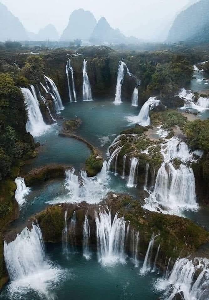 شلالات بان جيوك الواقعة على حدود فيتنام والصين ،تقع في وسط غابة استوائية خصبة. تتكون من شلالين رئيسيين من الجانب الفيتنامي ارتفاع 30 متر، عرض 100 متر.ومن الجانب الصيني: ارتفاع 20 متر عرض 50 متر.وتمتاز مياهه بانها صافية من الكريستال حيث تتدفق فوق الصخور الجيري.وتوجد حوله المناظر الطبيعية المحيطة من الخضراء الخصبة والتلال المتدحرجة.