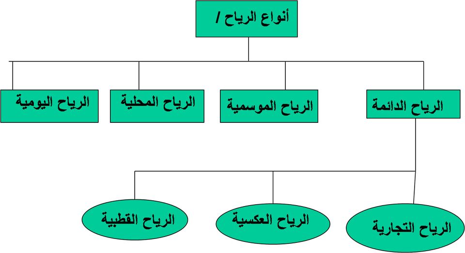 الرياح هي ظاهرة طبيعية غير مرئية وإنما نشعر بها، تعبر عن حركة جزيئات الهواء بشكل أفقى أو أقرب إلى الأفقي من مكان لآخر، وعادة ما ينتقل الهواء من المناطق ذات الضغط الجوي المرتفع إلى المناطق ذات الضغط الجوي المنخفض، وتتأثر حركة هذه الجزيئات بحركة ودوران الأرض حول نفسها وحول الشمس وبالتالي تختلف في كيفية تشكلها وسرعتها ومدتها واتجاهاتها كذلك. وانواع الرياح كما موضح في المخطط.