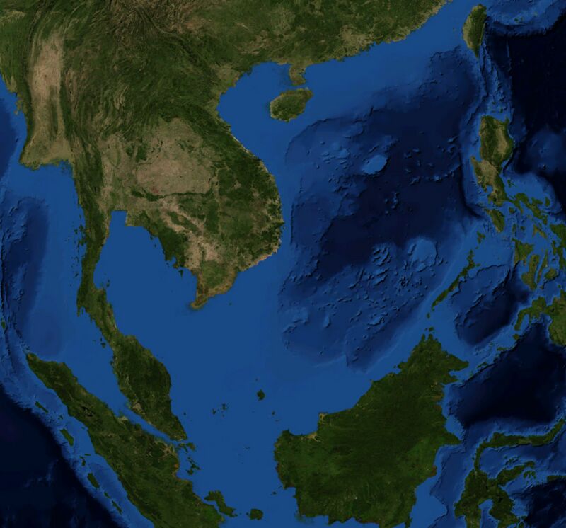 بحر الصين الجنوبي هو بحر هامشي في غرب المحيط الهادي. ويحده من الشمال شواطئ جنوب الصين ، ومن الغرب شبه جزيرة الهند الصينية، ومن الشرق جزر تايوان وشمال غرب الفلبين(أساساً لوزون ومندورو و بالاوان)، ومن الجنوب بورنيو و شرق سومطرة و جزر باغكا بليتوڠ‌، ليغطي مساحة تناهز 3,500,000 كم². ويتصل ببحر الصين الشرقي عبر مضيق تايوان، بحر الفلپين عبر مضيق لوزون، و بحر سولو عبر المضائق حول پالاوان (مثل مندورو و مضيق بالاباك), مضيق ملقا عبر مضيق سنغافورة، و بحر جاوة عبر كريماتا ومضيق باغكا.