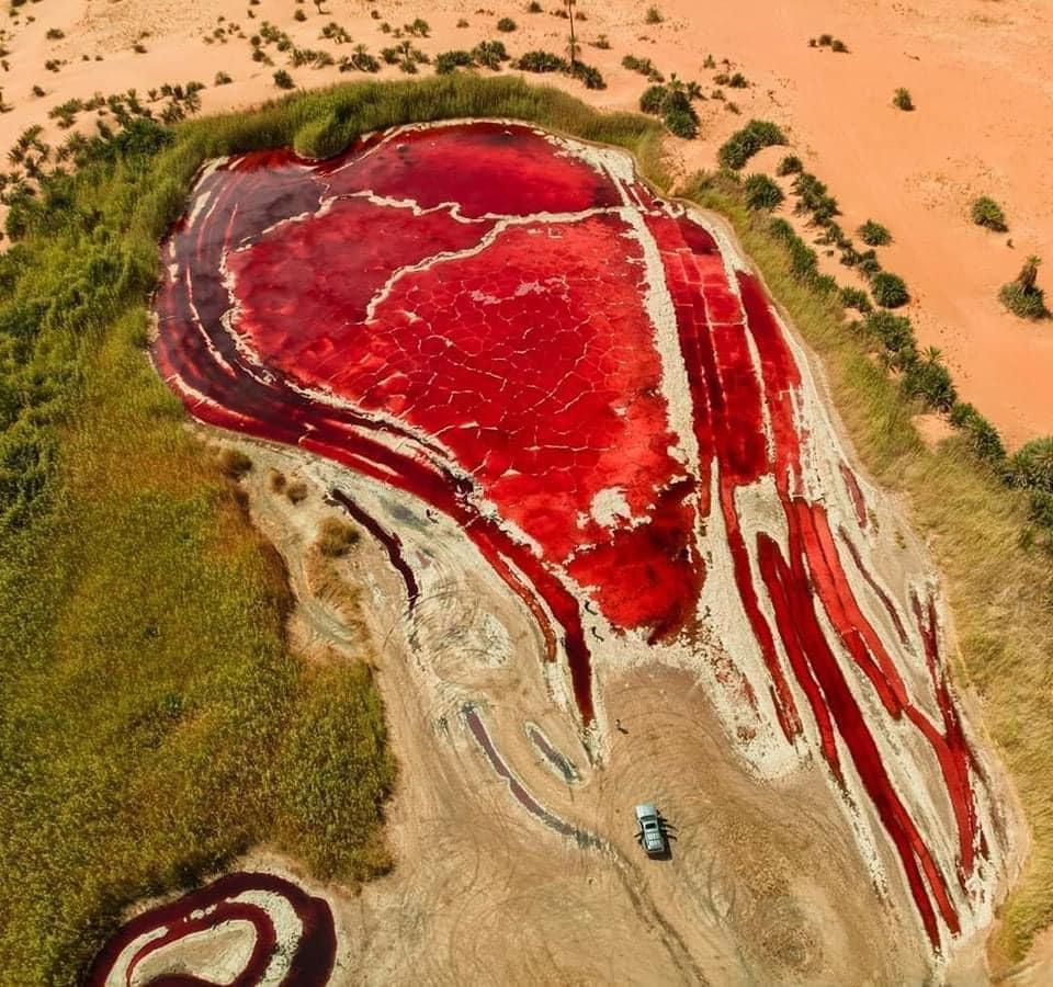 بحيرة الطرونة الحمراء : وهي واحدة من أجمل البحيرات وأغربها في العالم وهي موجودة في ليبيا، وتقع على بعد 90 كم شمال شرق مدينة أوباري، وتبعد عن العاصمة طرابلس حوالي 1180 كم، والسبب فى لونها الأحمر يعود لنوع غريب من الطحالب ينتج صبغة حمراء تمتص الضوء، والبحيرة أيضا شديدة الملوحة وتعرف البحيرة في ليبيا أيضا ببحيرة الدم.