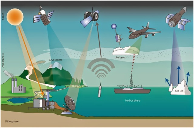 الاستشعار عن بعد : هو مجموعة الوسائل، من طائرات، أو أقمار صناعية، أو بالونات، وأجهزة التقاط البيانات، ومحطات الاستقبال، ومجموعة برامج معالجة البيانات المستقبلة، التي تسمح بفهم المواد والظواهر من طريق خواصها الطيفية.