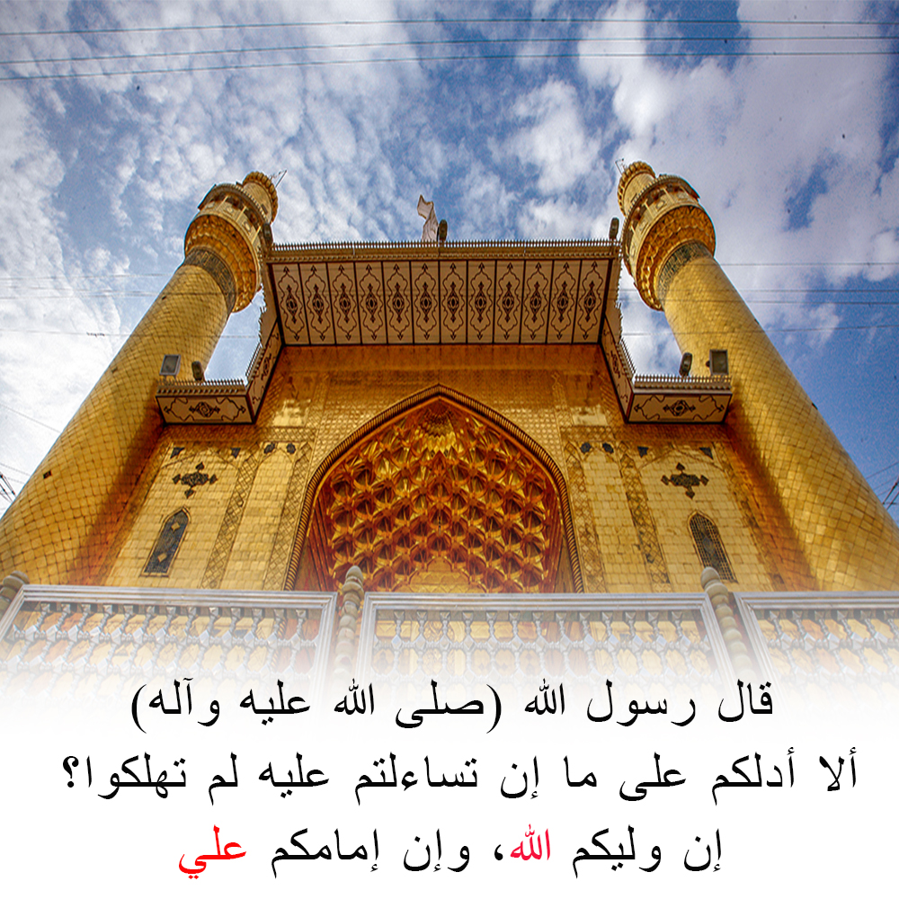 قال رسول الله (صلى الله عليه وآله): ألا أدلكم على ما إن تساءلتم عليه لم تهلكوا؟! إن وليكم الله، وإن إمامكم علي
