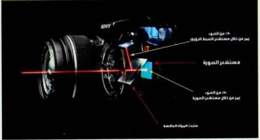 توضـع مـرأة متحركـة خلـف العدسـة كـما بالشكل مهمتهـا عكس الأشعة (الصورة) القادمة من العدسة نحـو محـدد الرؤية في الكاميرا في الكاميرا SLR كي يمكن معاينة المشهد قبل تصويره ، وعكـس الصـورة لجهـاز قياس الضوء Light Miter لتحديد كمية الضـوء المناسبة للصـورة. وتتحرك المرأة نحو الأعلى أو الأسفل للسماح للضوء بالمرور نحو الغالق وبالتالي إلى الفيلم .