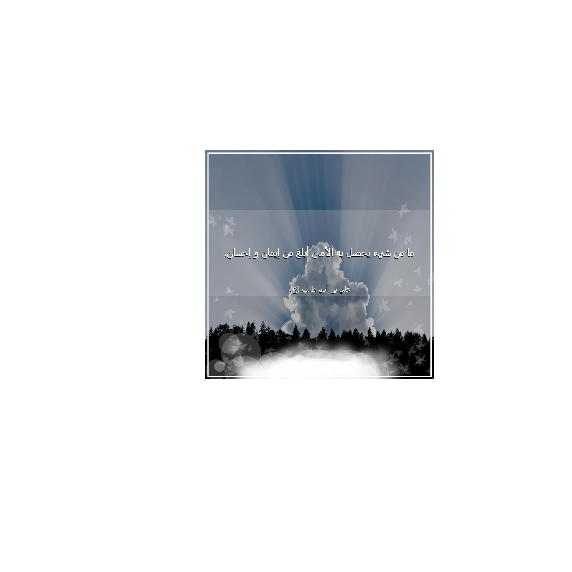 مَا مِنْ شَيْ‏ءٍ يَحْصُلُ بِهِ الْأَمَانُ أَبْلَغُ مِنْ إِيمَانٍ وَإِحْسَانٍ . أمير المؤمنين (عليه السلام)