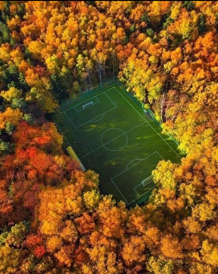 ملعب كرة قدم في وسط الغابة في العاصمة الروسية موسكو بفصل الخريف