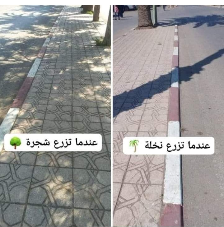 عند زراعة الاشجار تكون مساحة الظل أكبر وتعمل على تلطيف البيئة ، على العكس من النخيل .