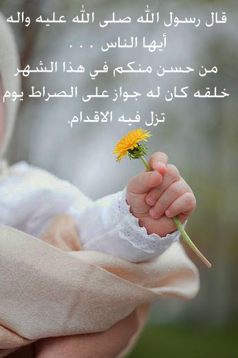 أيها الناس من حسن منكم في هذا الشهر خلقه كان له جواز على الصراط يوم تزل فيه الاقدام