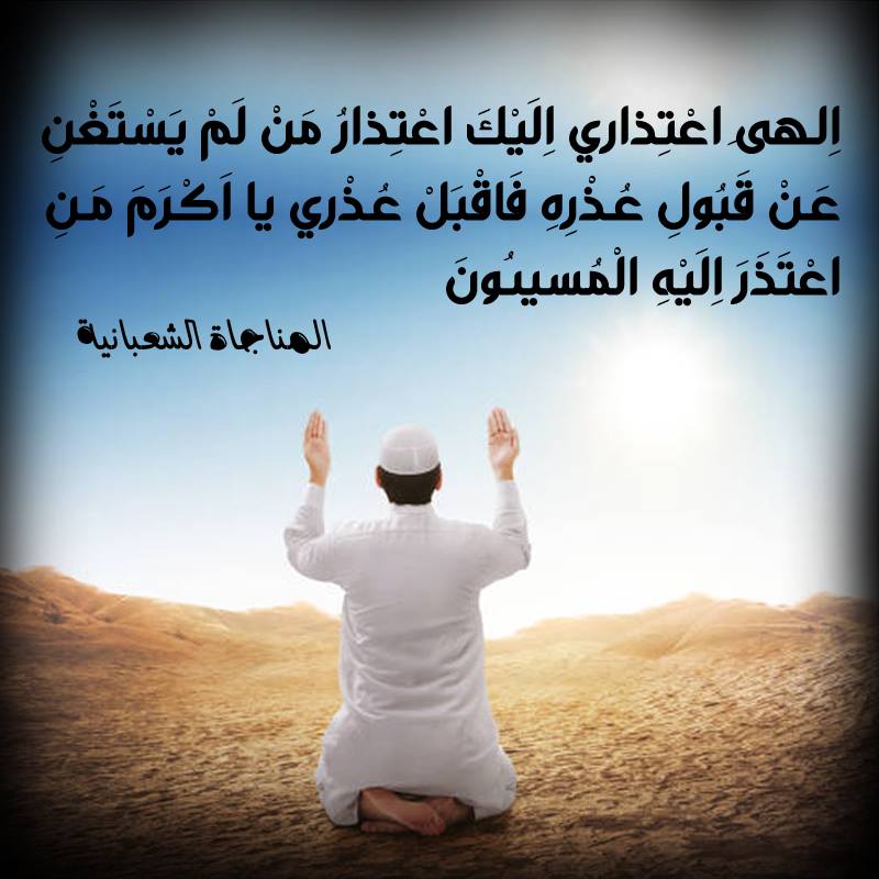 اِلـهىِ اعْتِذاري اِلَيْكَ اعْتِذارُ مَنْ لَمْ يَسْتَغْنِ عَنْ قَبُولِ عُذْرِهِ، فَاقْبَلْ عُذْري يا اَكْرَمَ مَنِ اعْتَذَرَ اِلَيْهِ الْمُسيئُونَ.