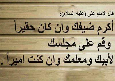 أكرم ضيفك وإن كان حقيراً، وقُم على مجلسك لأبيك ومعلمك وإن كنت أميراً.