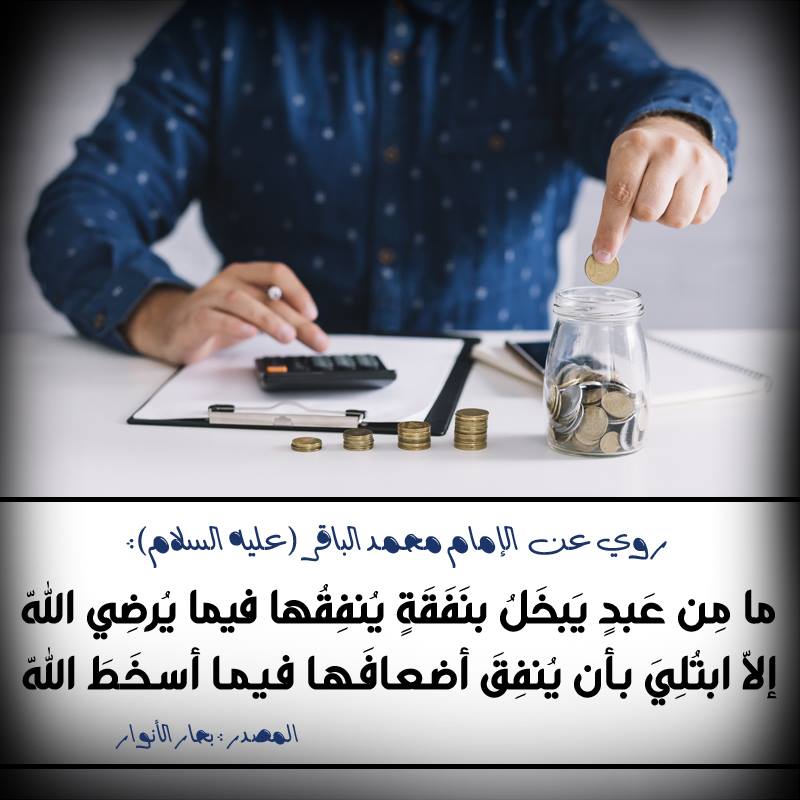 الإمام محمد بن علي الباقر ( عليه السلام ) أنهُ قَالَ : ما مِن عَبدٍ يَبخَلُ بنَفَقَةٍ يُنفِقُها فيما يُرضِي اللّه َ إلاّ ابتُلِيَ بأن يُنفِقَ أضعافَها فيما أسخَطَ اللّه