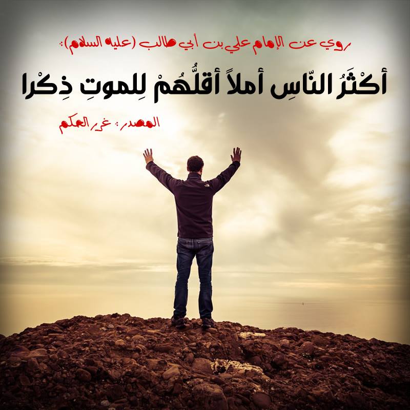 الإمام عَلِيِّ بْنِ أَبِي طَالِبٍ ( عليه السَّلام ) أنهُ قَالَ : أكْثَرُ النّاسِ أملاً أقلُّهُمْ لِلموتِ ذِكْرا .