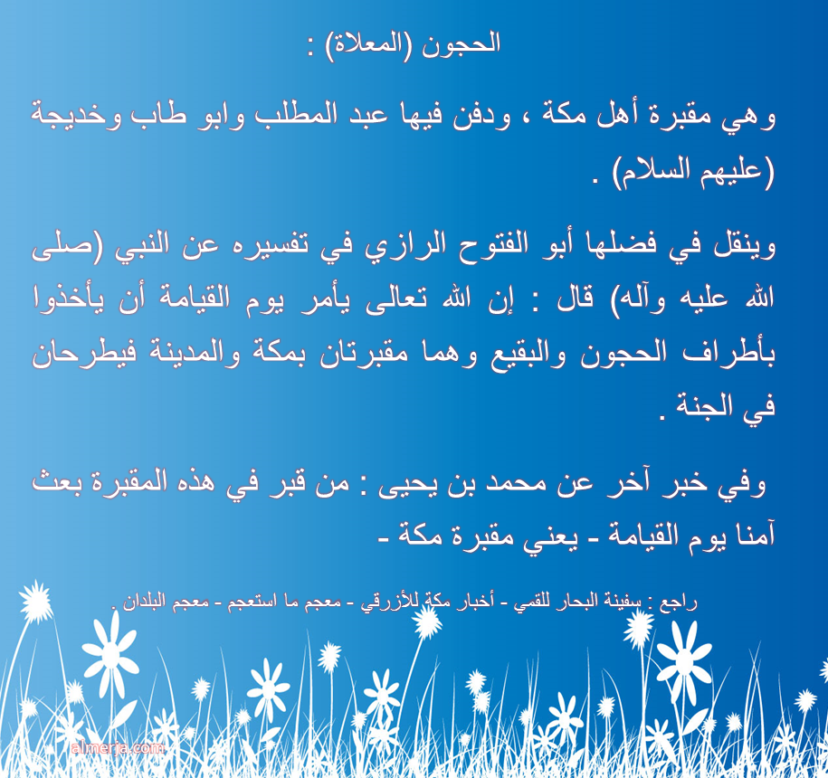 راجع : سفينة البحار للقمي - أخبار مكة للأزرقي - معجم ما استعجم - معجم البلدان .